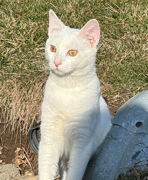 white cat friendly with green eyes