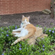 Orange and white male cat lost in the area of Eastside dr in Brownsburg. He was wearing a collar with sushi and a bell on it .