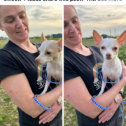 chihuahua, female primarily white with tan spots on ears. Proof of ownership required.