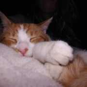 He is orange and white and he has a birth mark on his nose he isn’t chiped or fixed He comes to the name Jackson