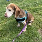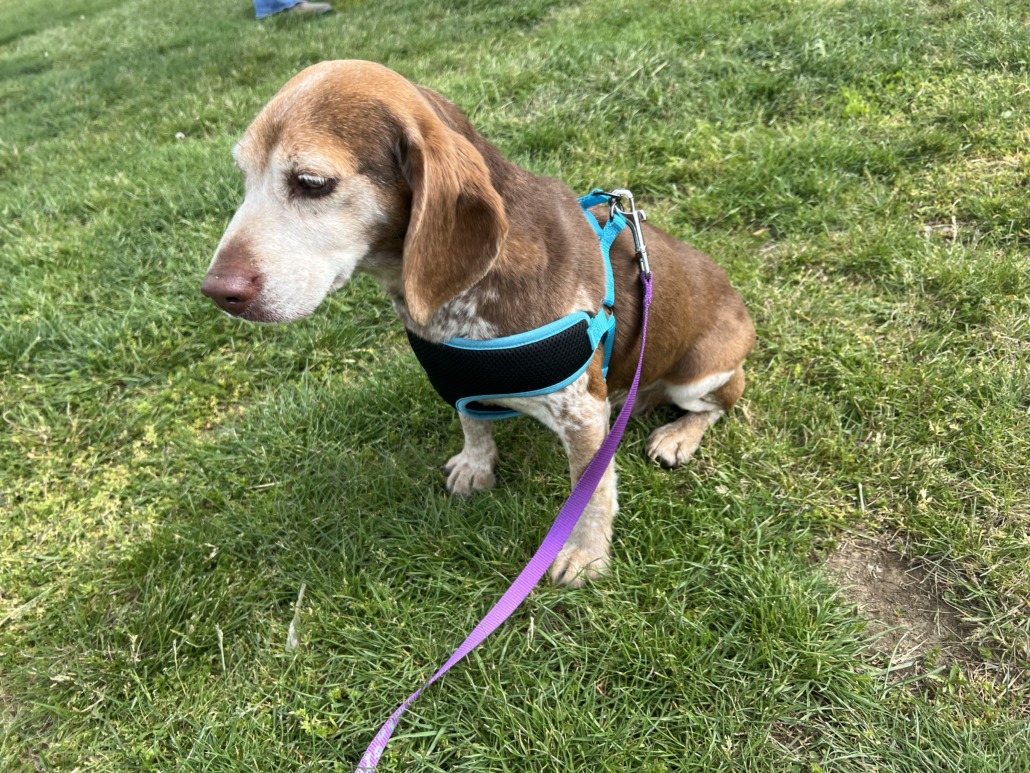Small tan Beagle. Looks to have some blue tick markings. Proof of ownership required