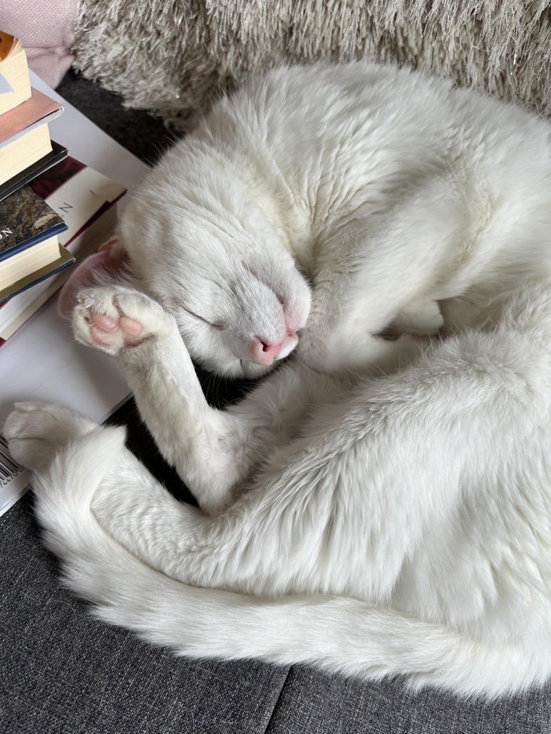 Vino is an all white male cat. He’s very friendly but tends to get freaked out when he escapes outside.
