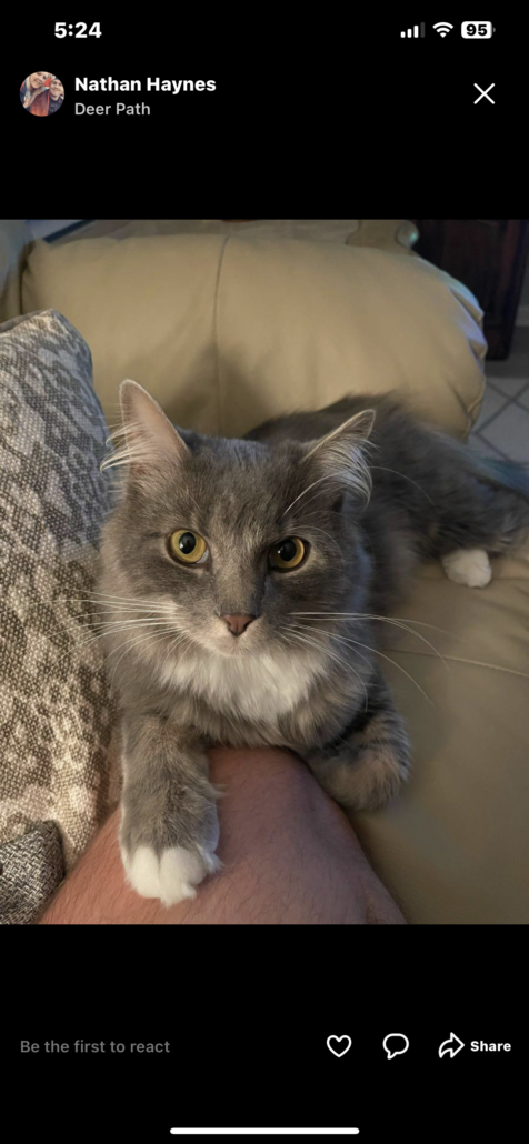 Lost Cat in Deer Path neighborhood in Noblesville