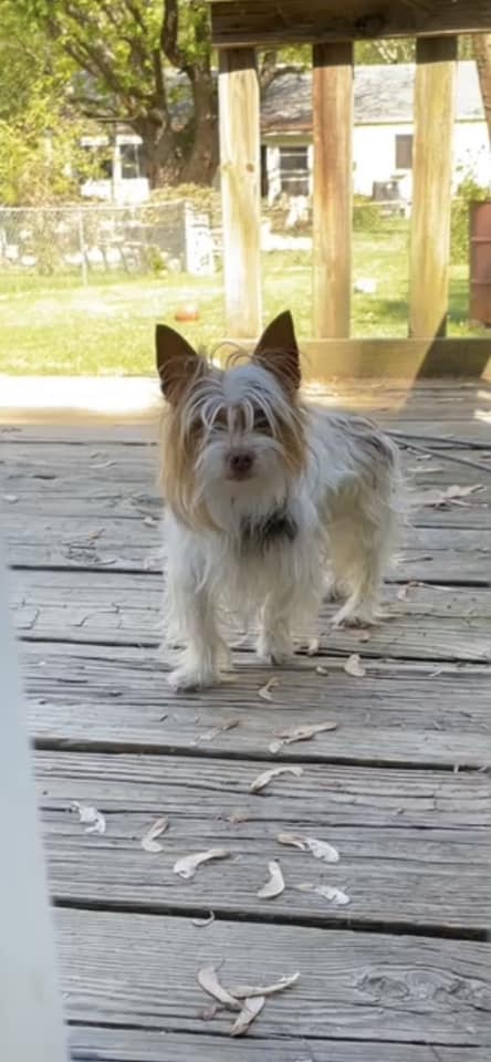 Small, WHITE/BROWN, fluffy, Corgi-looking dog with a collar roaming on W. Loretta Dr. Indianapolis, Indiana 46221 (Pheasant Run/Decatur Township) near Granner Dr. It was first spotted April 24th on Lippan Way and has been spotted by others towards the end of W. Loretta Dr. near Granner Dr. since at least April 29. Not very friendly, scared and anxious… Won’t let others near it, but has been seen playing with some of the neighborhood dogs (did upset another dog though when it got into their fenced-in backyard). When the dog is roaming it can be seen going up and down the sidewalks/street and around one of the neighbor’s homes like a loop over and over.