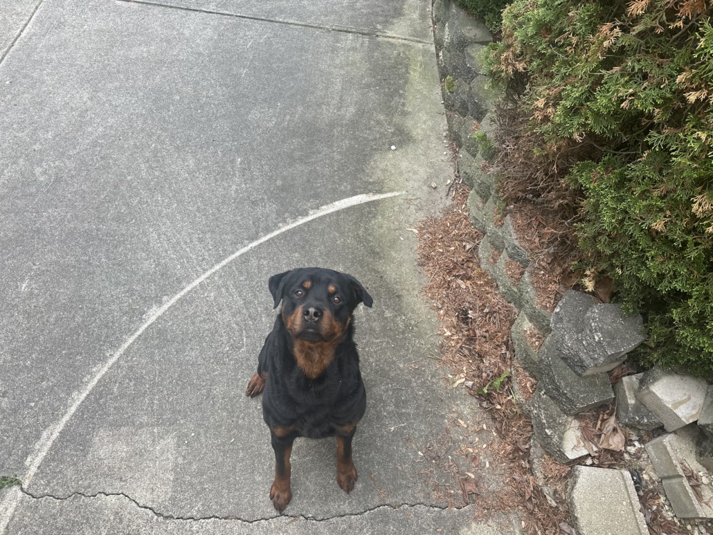 Proof of ownership required. He has been in my yard since 6:30 am.