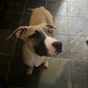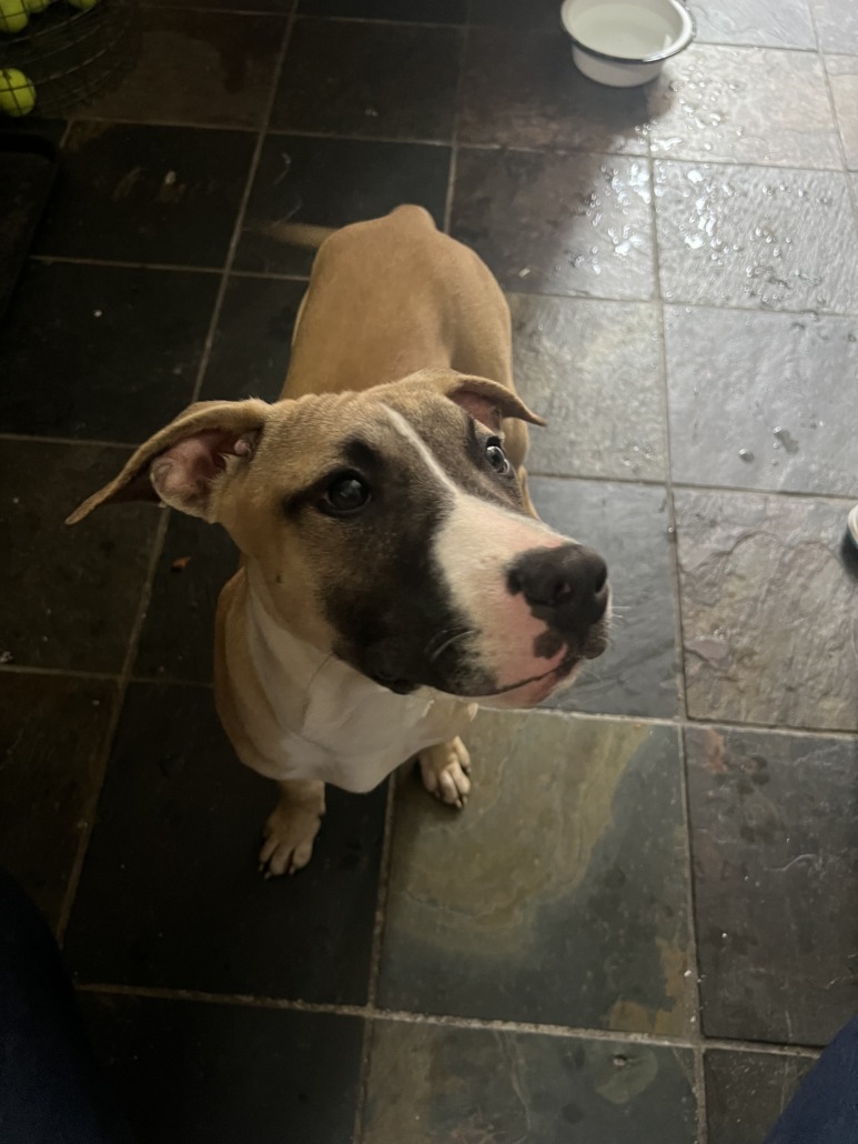 Lost puppy, tan with black and white coloring. Proof of ownership is required.