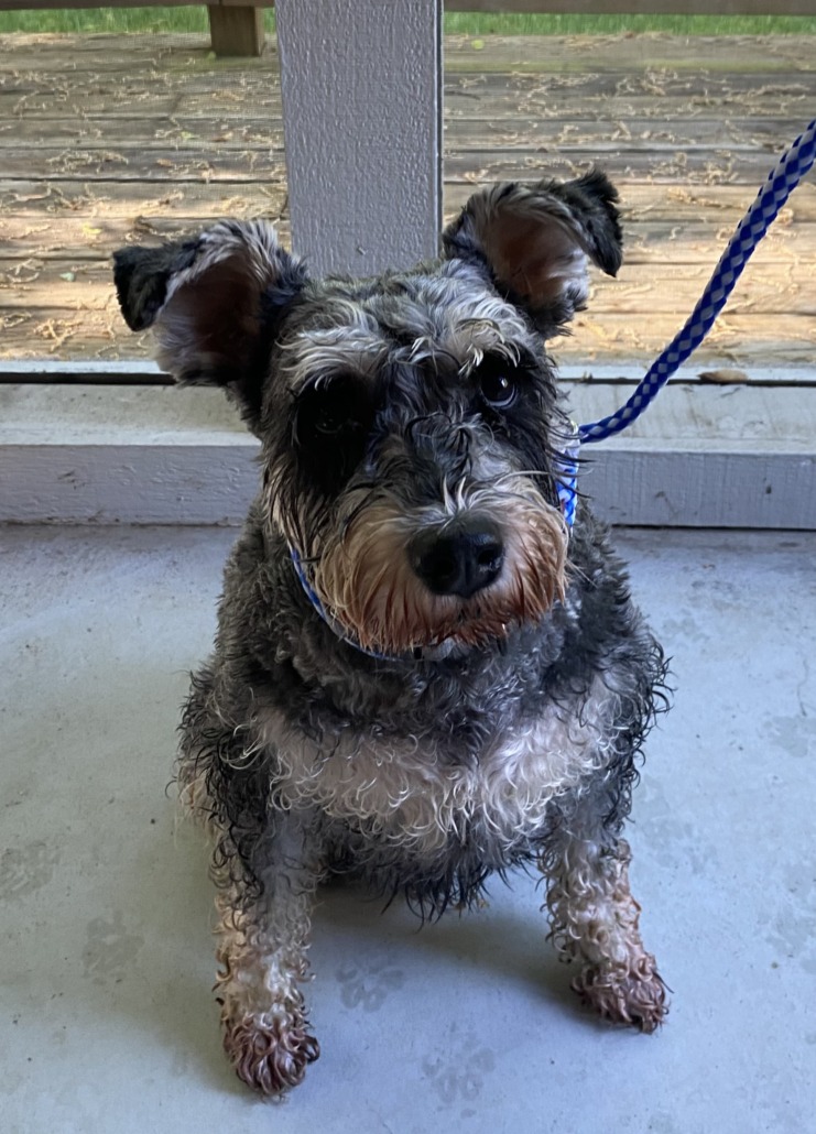 FOUND DOG! Male neutered Miniature Schnauzer in Woodland Springs neighborhood near Brian Place and Haverstick Road around 9AM this morning (5-8-24). He is friendly and is a salt and pepper color. Has a collar (see pic)…unsure of microchip at the moment. Please contact me if this is your dog or if you know him. Thank you!