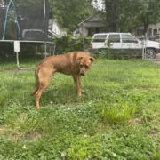 Skinny dog around 50lbs with reddish fur