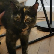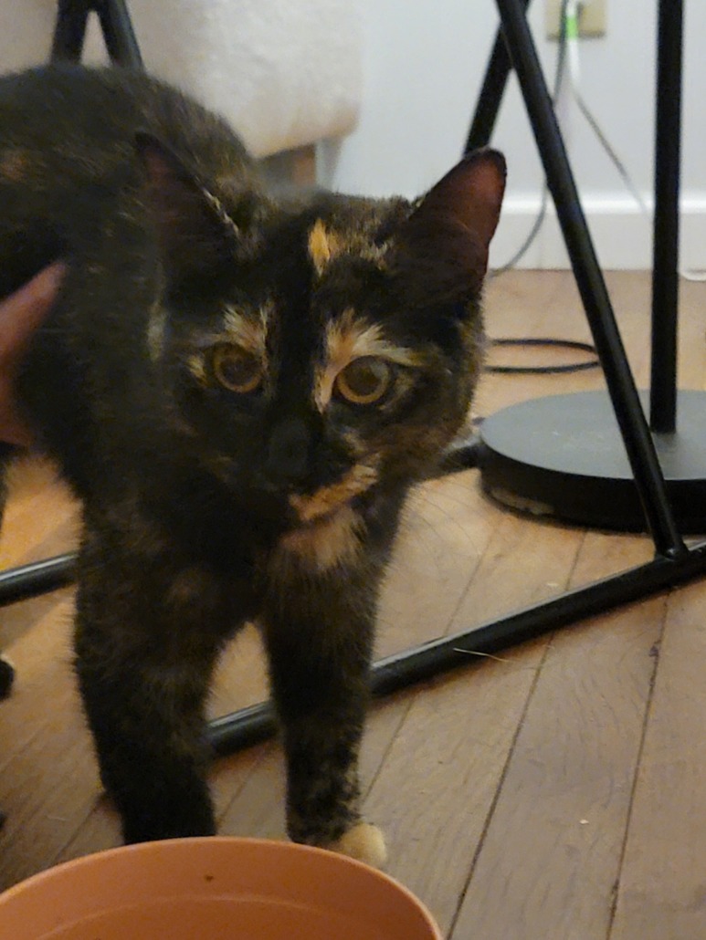 Very friendly young female cat. I’ve seen her around the neighborhood and usually she runs away but tonight she walked up to me, allowed me to pick her up, and eventually walked into my house.