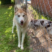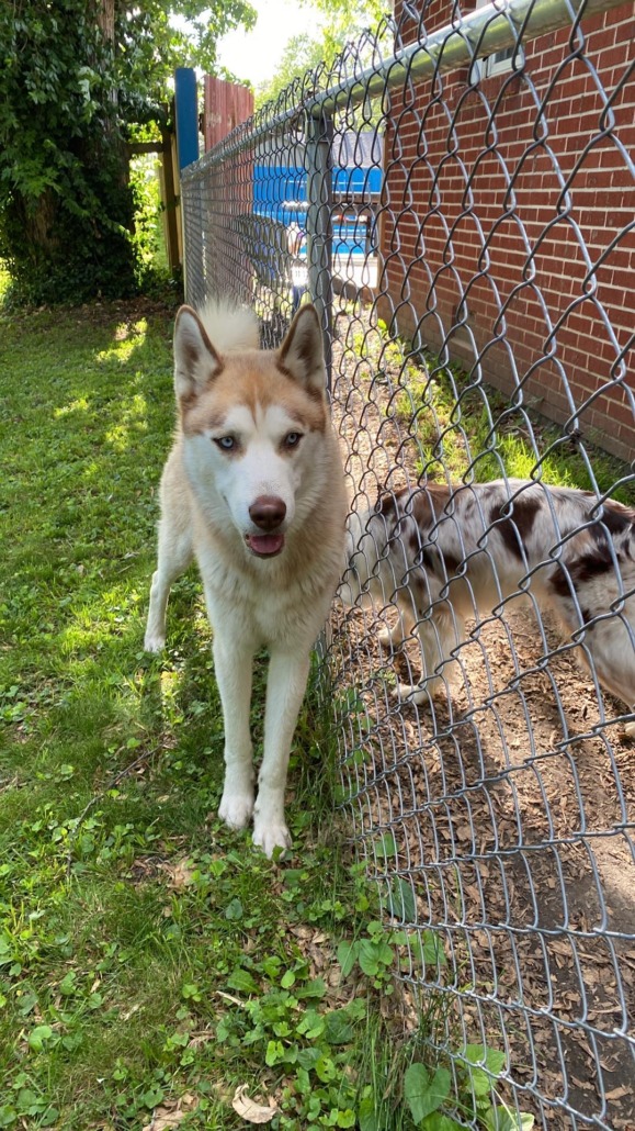 Proof of ownership is required. Male husky/husky mix possibly nuetered. Skinny but very calm and friendly gets along with other dogs and cats.