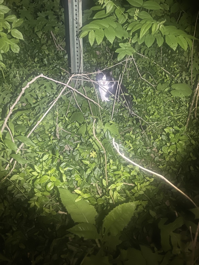 Spotted at Juan Solomon Park at 9:55pm today. Female cat I believe. Domesticated and very friendly. If this is anyone’s cat she is in the woods at the park near the sidewalk