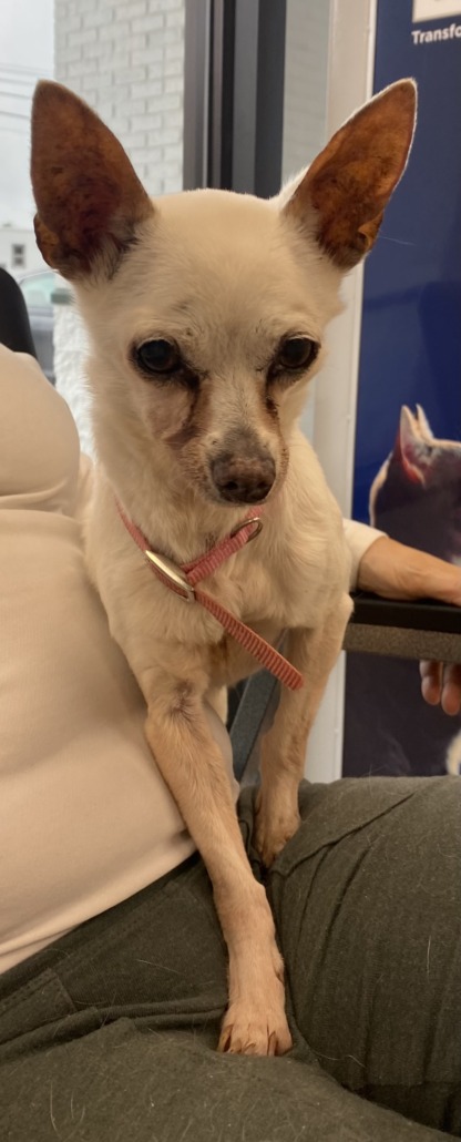 Female cream chihuahua has microchip is wearing a pink colar. Found on 108th college