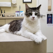 Milavich answers to her name and is getting a little older. She is skinny but still eating and drinking. She has no fear and is truly her world. I think I got her chipped a while back but can’t find the paper work. She likes to lay in odd places and on hard angles. Had a few knots on her chest we were working on getting out.