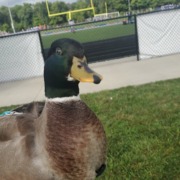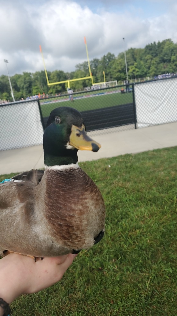 James is a grey call duck. He will usually respond to his name and a handful of food. He is an emotional support animal and is very domestic. He will not be able to survive in the wild.