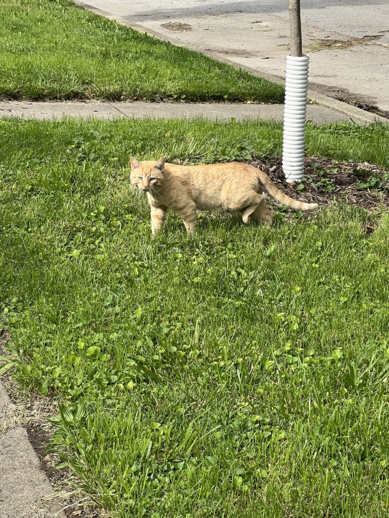 Cat sighting – I’ve been seeing this guy around quite a bit lately. He’s not skittish, like true ferals are, and is comfortably out exploring both day and night. I’ve not been able to get super close to him because my cat is usually with me and not very friendly with most other cats. Despite my guy’s howls at him, this little orange guy followed us down the block and visits my porch semi frequently. He’s not ear tipped, so I’m wondering if he’s already got a care taker and/or might be a lost pet.