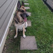 German shepherd found on Hoyt Avenue, calm and has a grey collar but no tags. Please provide proof of ownership.