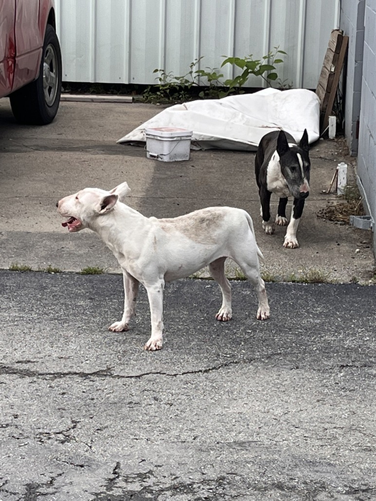 Two bull terrier type dogs roaming near Earhart and Southeastern ave. Traveling together, can not contain but in the area.