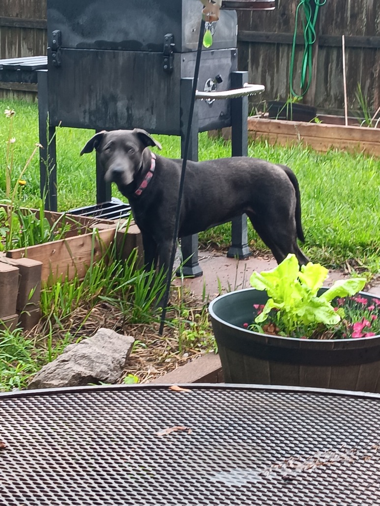 Found on norcroft dr 46221 no chip. Female young lab grayish black not spayed. Very sweet.