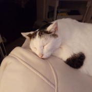 Fred is 15 yrs old. Has bad hips. Not chipped.. No collar. Indoor cat. White w black dots… lost at 7501 Terrace Beach in Ravenswood.