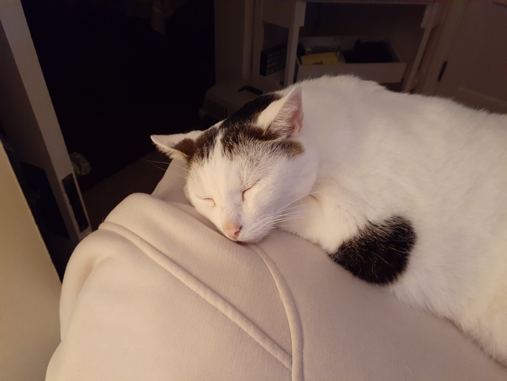 Fred is 15 yrs old. Has bad hips. Not chipped.. No collar. Indoor cat. White w black dots… lost at 7501 Terrace Beach in Ravenswood.
