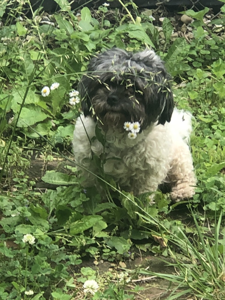He barks but does not bite. He should have shorter hair now compared to the picture.