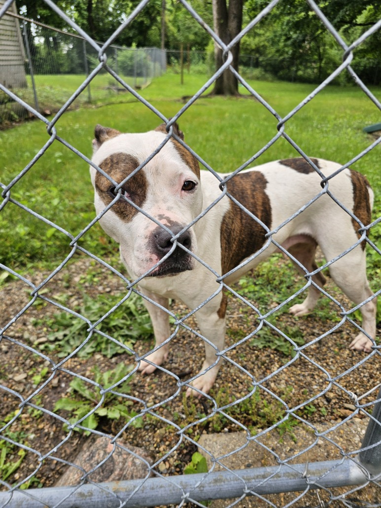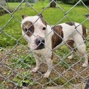 Pit bull mix, very sweet and friendly dog but looking to fond her owner