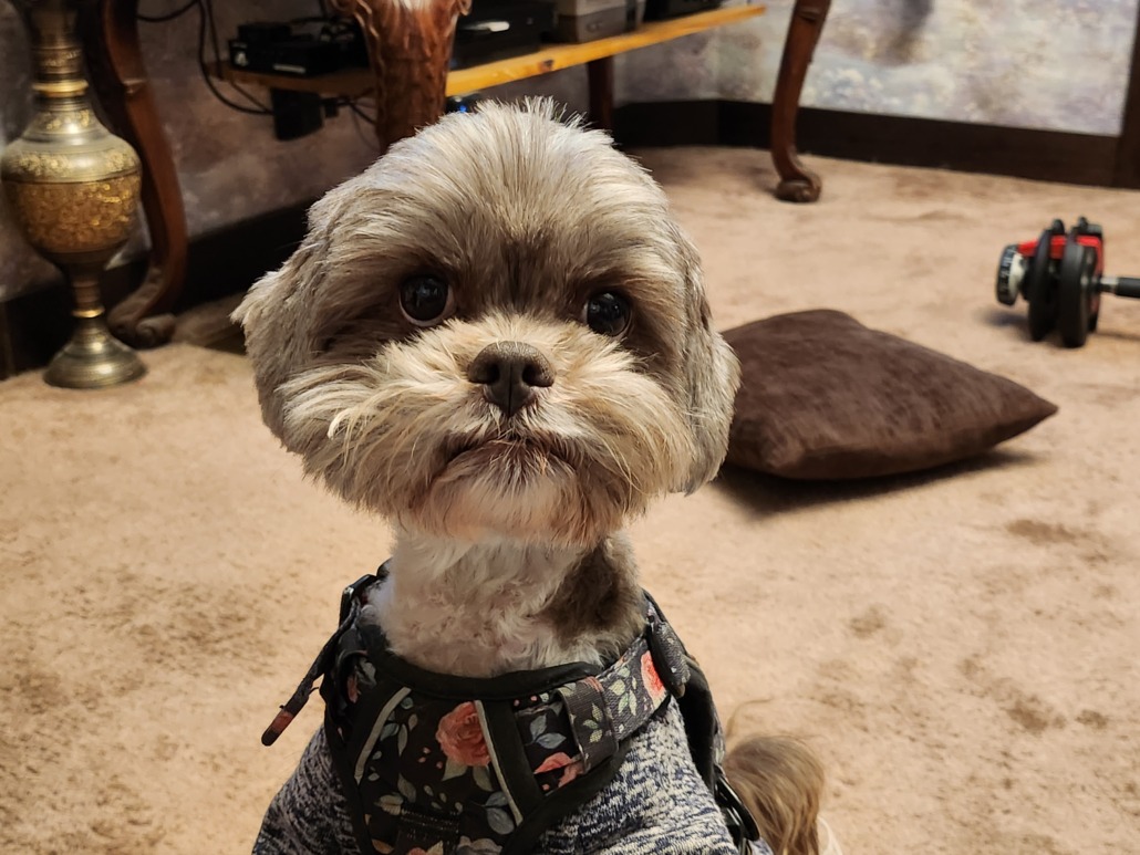 Light brown and white belly medium trim (due for her summer trim) answers to Zoey, or Zolene. Friendly to everyone, not aggressive towards kids but avoids them. Great with other dogs. Has no harness or collar on due to her digging at herself in one spot on her back. Took it off for the day to just let her have some time with it off and she squeezed through our white picket fence. She does not have a route that she walks but she is determined to explore wherever the wind takes her.