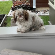 Small Gray and white dog.
