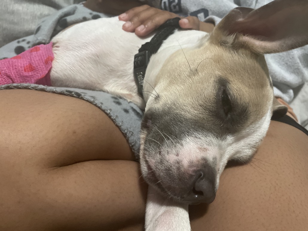 Male. Approx 6 months to 1 year old. Possible pitbull mix.