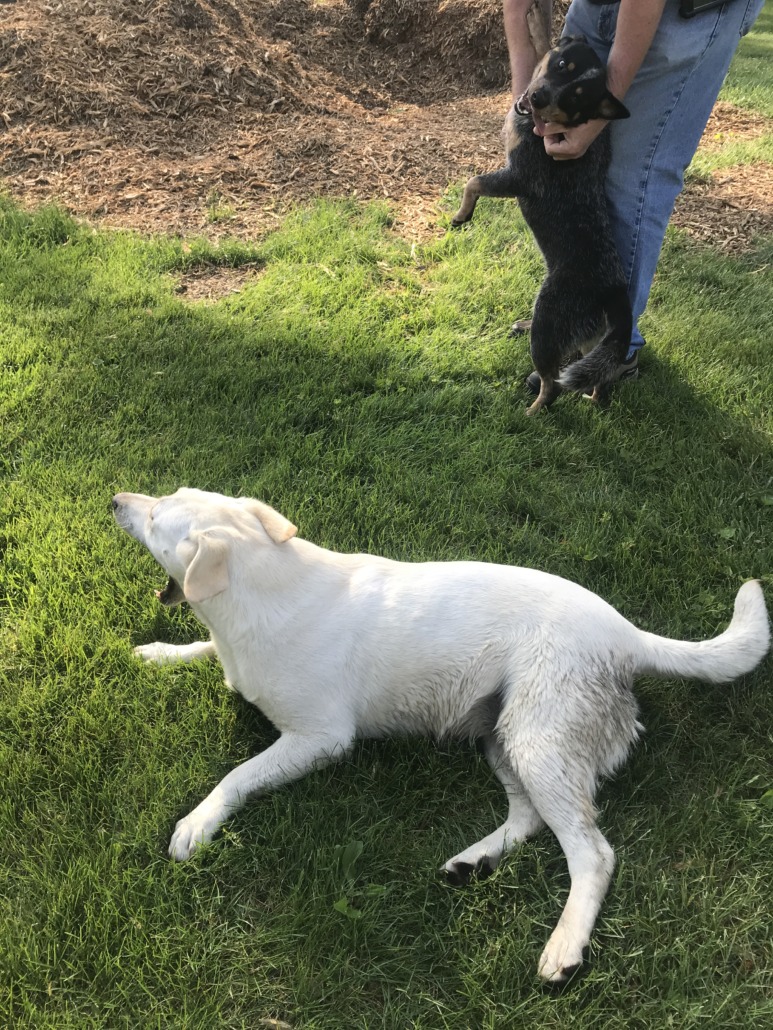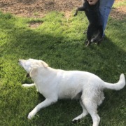 Two dogs. One white one black and smaller. Proof of ownership required.