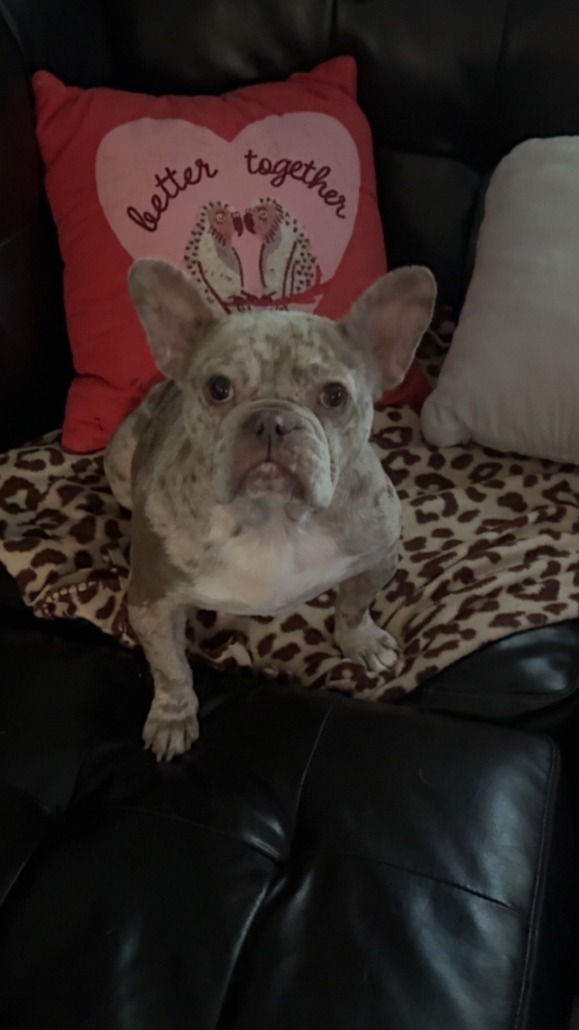 GOLDEN & BROWN SPOTTED FRENCH BULLDOG. NO COLLAR DUE TO SLIPPING OUT OF – VERY PETITE & TIMID. PLEASE DO NOT APPROACH OR YELL. PLEASE REPORT ANY SIGHTINGS. HAS MEDICAL ISSUE