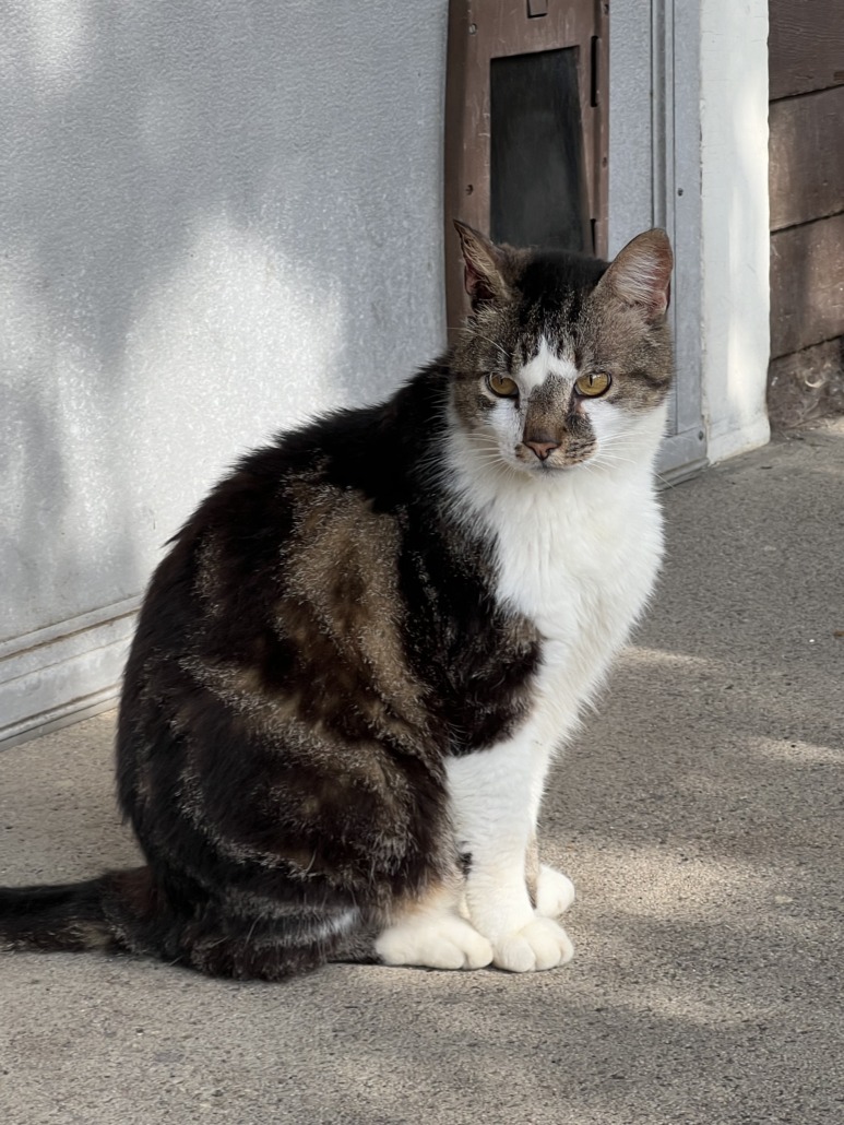 She almost seems like she’s abandoned, very gentle cat, but she’s been living in abandoned house in our neighborhood for a couple weeks. I’ve been feeding her along with my community of cats.