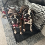 Both know how to sit, and do well in the car & cage.