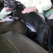 2 or 3 year old pit bull. Has recently nursed, pink collar; no chip found. Very sweet, very malnourished. Proof of ownership required.