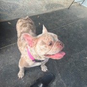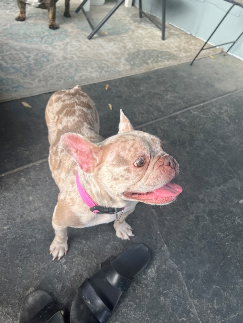 GOLDEN & BROWN SPOTTED FRENCH BULLDOG. NO COLLAR DUE TO SLIPPING OUT OF – VERY PETITE & TIMID. PLEASE DO NOT APPROACH OR YELL. PLEASE REPORT ANY SIGHTINGS. HAS MEDICAL ISSUE