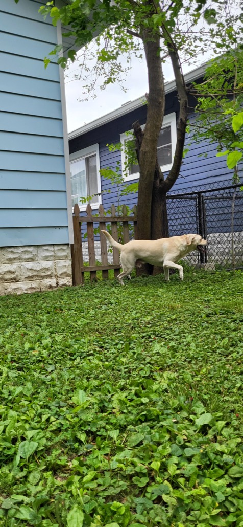 I’d guess about 2 year old male white lab. He is not fixed and had no collar. Found around N Drexel ave and east st Claire’s street. He is very sweet, knows sit, shake with both paws, take treats “gentle”, and is good about not jumping.