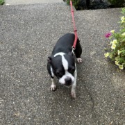 Small black and white terrier was on W Hampton Dr walking towards Butler U. Near Butler Police Dept.