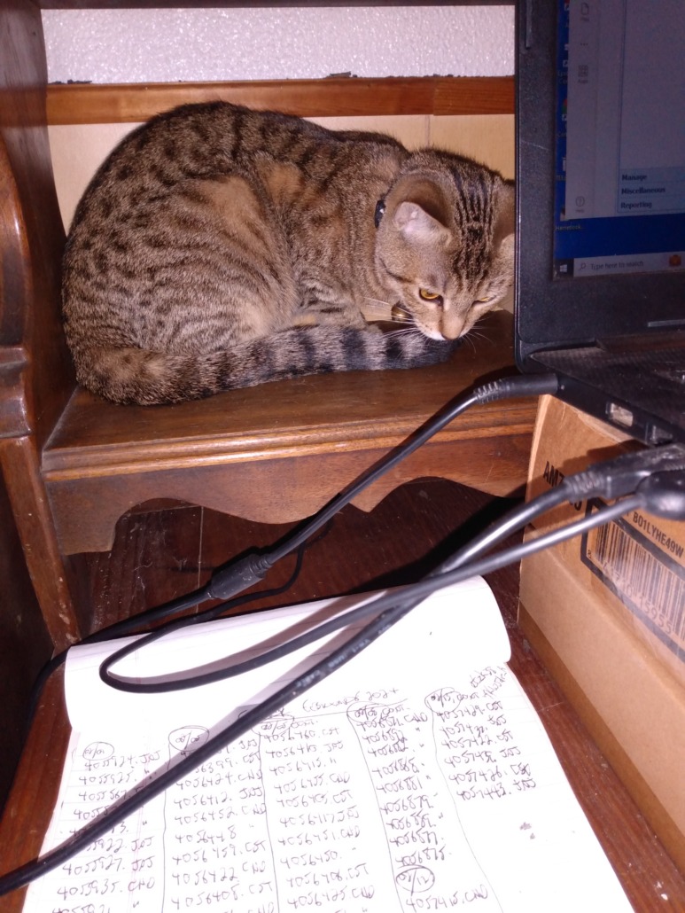 Approx 9-month old, friendly, very vocal, tiger kitty last seen wearing a black safety collar with bell. She loves to be petted and doesn’t like to be picked up.