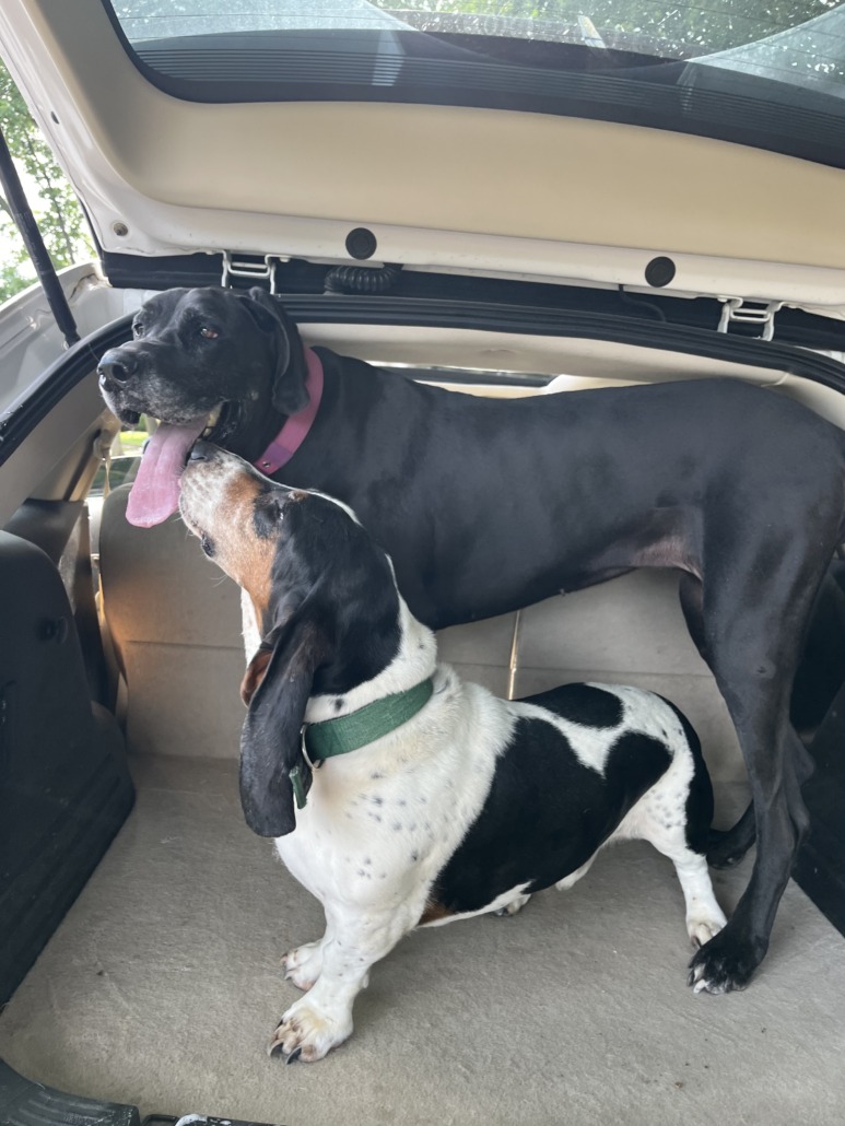 Female black Great Dane and male basset hound