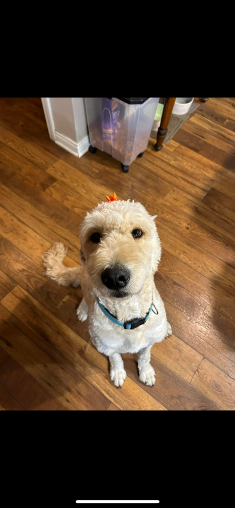 Golden doodle, last seen wearing a turquoise collar and harness, very friendly, microchipped