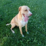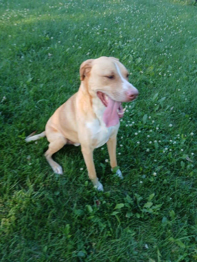 Blonde dog, male, friendly, knows commands. Please call 3174102027 for pick up.
