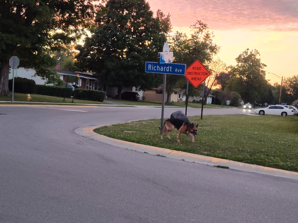 Very pretty German Shepherd running around neighborhood. I saw it this morning, my husband saw it a couple days ago, same area, both times in the morning. Wouldn’t come to us.