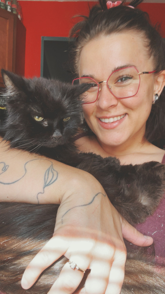 Hello everyone! I found this black cat in a state of malnutrition, skin and bones, matted and feces covered fur. She was across the street from Garfield Brewery. She was not feral so I picked her up and took her home, bathed her, shaved off all her matts, and she’s now drinking and eating very well. No open sores or respiratory issues, not even a single flea on her which was very odd. She is hit or miss with the litter box. We made her a soft spot in the bathroom near a litter box but she’s still sometimes pooping and peeing on the floor. I will foster this cat back to health but I cannot be permanently responsible for this stray. I just could not let her wander around in that state alone.