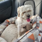 Small white dog with a light brown spots on both ears. She had a pink collar with rhinestones. She’s very friendly and has not barked at all. I went to ‘Airport Animal Emergi-Center’ in to find out if she is microchipped and she is not…hope to find her owners soon!
