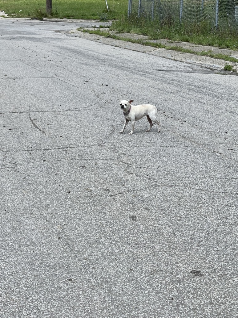 Has what looks like a pinkish collar on it seems shy but sweet. It’s been running around for like a week at the end street of prospect and kealing there’s no tag. It looks like a purebred chihuahua