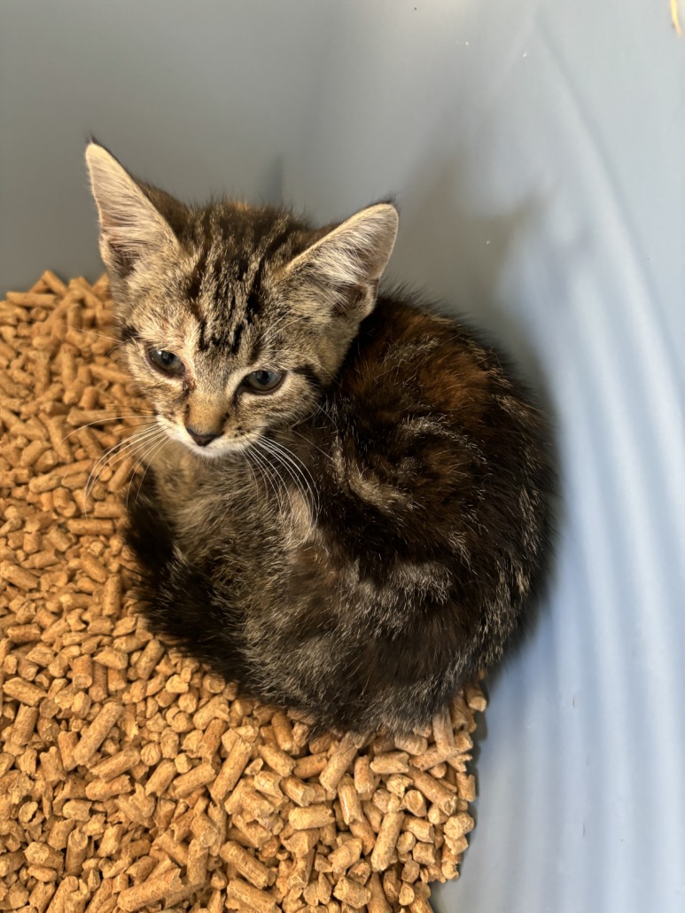 Tiny little kitten found near 34th and Fall Creek. Very scared and meowing a lot. Has no collar. Has basic tabby markings but with a little more orange along the back.