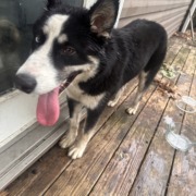 Husky mix make found. Black and white. One Blue and one brown eye