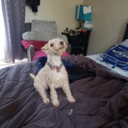 Small terrier breed with a reddish/tan coat. She answers to etta or mama. She can be quite vocal at times which means she likes to bark and she is microchipped so please have her scanned by a local vet or rescue shelter and they can reach me.