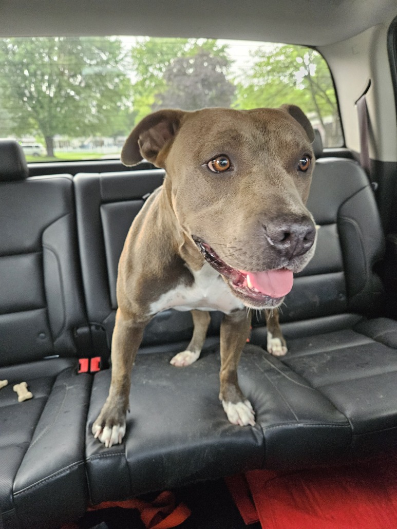 Brown female pit. She looks to be maybe a year old and taken care of. She dies have one distinctive mark on her that owner should know and will have to be able to tell me. Proof of ownership required!