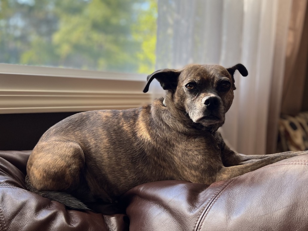 Roxie is an incredibly sweet 20 pound pug/boxer mix.